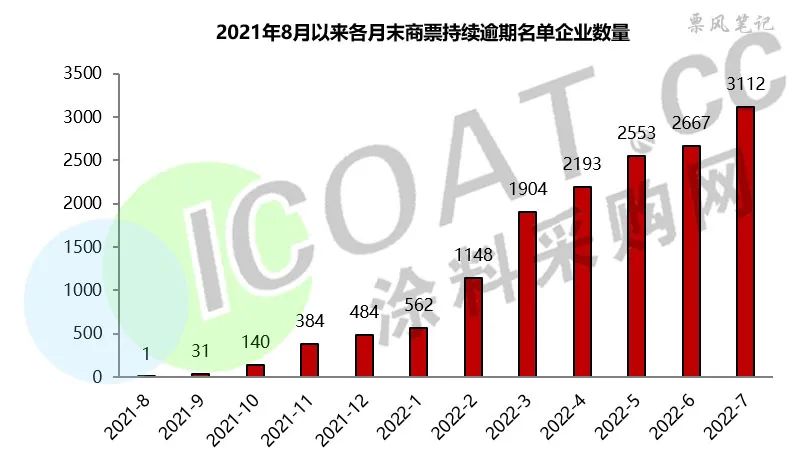 據上海票交所公布的名單,截至2022年7月31日的商票持續逾期企業合計3112家,較上月末增加445家,其中首次出現的企業624家,再次出現大幅上升。這也讓越來越多的行業關注到,商票逾期或將給產業鏈上環環相扣的企業帶來不可預期的影響。