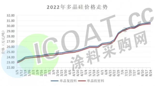 多晶硅報價295333.34元/噸,較年初上漲119333.34元/噸,漲幅67.8%;
