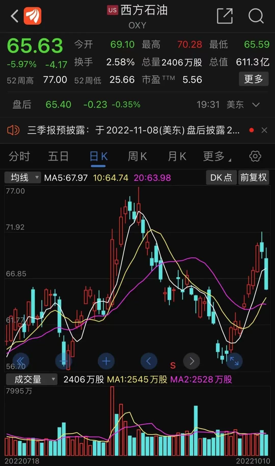 隔夜美股能源股、銀行股集體走低。截至收盤,今年以來被巴菲特旗下公司大幅增持的西方石油跌近6%,埃克森美孚跌2.17%,康菲石油跌1.44%,雪佛龍、斯倫貝謝均跌逾1%;花旗跌超1%,美國銀行、摩根大通、高盛、摩根士丹利、富國銀行集體翻綠。