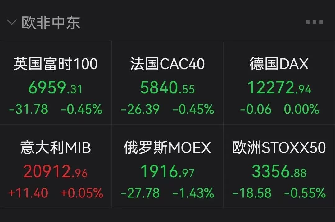 歐洲股市主要股指隔夜小幅震蕩,臨近尾盤英國富時100指數、法國CAC40指數、德國DAX指數跌幅收窄。