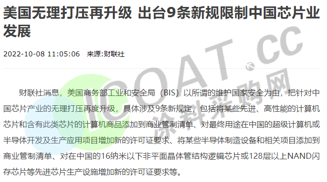 另外,美國商務部工業和安全局(BIS)以所謂的維護國家安全為由,把針對中國芯片產業的無理打壓再度升級。具體涉及9條新規定。針對存儲芯片制造商的新限制措施的關鍵細節,在中國經營的外國企業不受影響,擴大對KLA、科林研發、應用材料、英偉達和超威等企業將技術出口給中國的限制。