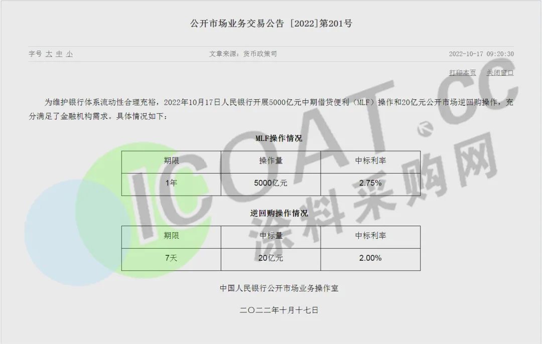 今年以來,政策層面高度聚焦穩增長,金融管理部門年內兩次召開部分金融機構貨幣信貸形勢分析座談會,要求加大信貸投放力度。為維護銀行體系流動性合理充裕,人民銀行開展5000億元中期借貸便利(MLF)操作和20億元公開市場逆回購操作,充分滿足了金融機構需求。中標利率均持平,分別為2.75%、2.0%,期限分別為1年、7天。