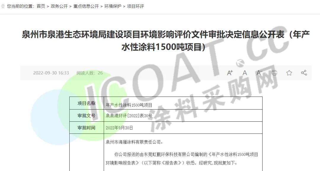 泉州市海雁涂料有限責任公司:年產水性涂料1500噸項目。
