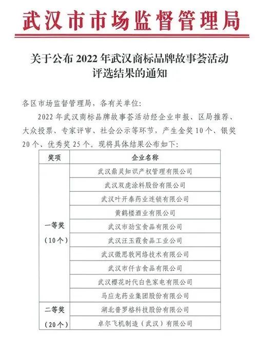 據涂料采購網了解,武漢市知識產權局高度重視品牌培育工作,不斷推動武漢市知識產權創造運用、培育特色優勢產業和品牌。培育出一批擁有自主知識產權、品質優良、市場占有率高的“武漢制造”品牌產品。“武漢商標品牌故事薈”活動于2022年4月開始舉行,全市各界經企業申報、區局推薦、大眾投票、專家評審、社會公示等環節,至2022年9月產生金獎10個、銀獎20個、優秀獎25個。