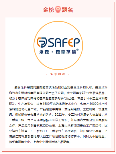 為推動水性工業漆行業健康發展,應機電設備、汽車配件、五金配件等多領域企業的邀請,涂料采購網聯合下游多個行業領域以及終端消費者,開展“2022年度水性工業漆十強”評選活動。此次評選活動通過實地調研、下游企業推薦、線上評選等多個環節,對目前國內水性工業漆企業發展情況進行全面了解。