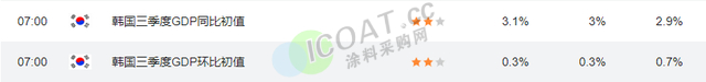 今年第三季度韓國GDP環比增長0.3%,低于前兩季度的0.6%和0.7%,是自2021年第三季度以來的最低增速。同比增長3.1%,略高于前兩季度的3%和2.9%,但低于去年三季度的4%。個人消費增長1.9%,設備投資增長5%,建設投資增0.4%,出口增長1%,進口增長5.8%。