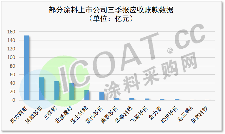 綜合涂料上市公司發布的三季報數據不難發現,十幾家涂料企業應收賬款累計350.55億元,應收票據累計27.58億,應收票款合計378億,不可謂不驚人。