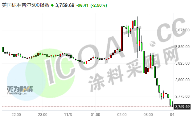 標普500指數11個板塊“全軍覆沒”均跌超1%??蛇x消費板塊收跌3.7%,信息技術/科技板塊跌3.47%,電信板塊跌超3%,房地產、原材料、能源板塊至多收跌逾2.6%,公用事業板塊跌超1%。