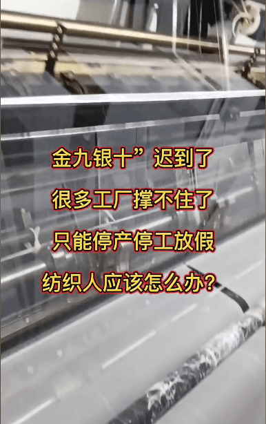 不少紡織廠表示,"金九銀十"遲到,很多工廠撐不住了,只能停工停產(chǎn)放假。