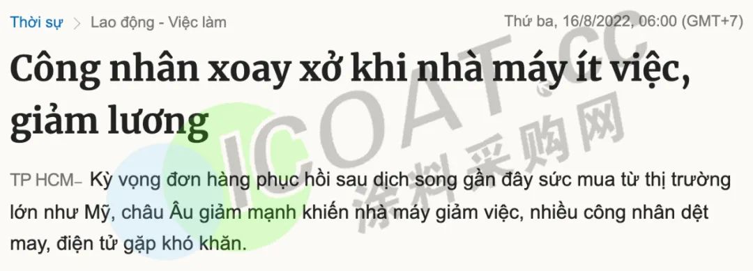 由于訂單減少超過(guò)20%,位于越南的專(zhuān)業(yè)生產(chǎn)出口皮鞋的Taekwang Vina股份公司不得不安排近40,000名工人休假。具體來(lái)說(shuō),8-9月員工放假3天,其中1天用于年假,2天不來(lái)車(chē)間但仍由公司支付區(qū)域最低工資。