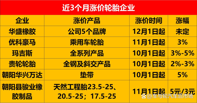 由于原料成本增加,今年三季度多家輪胎企業為了“回血”發布了漲價通知單,漲幅在2%-5%左右。