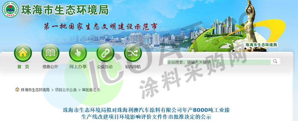 珠海利澳汽車涂料年產(chǎn)8000噸工業(yè)漆生產(chǎn)線改建項(xiàng)目環(huán)境影響評價(jià)文件,擬投資1000萬元調(diào)整車間布局,新增工業(yè)漆生產(chǎn)線。
