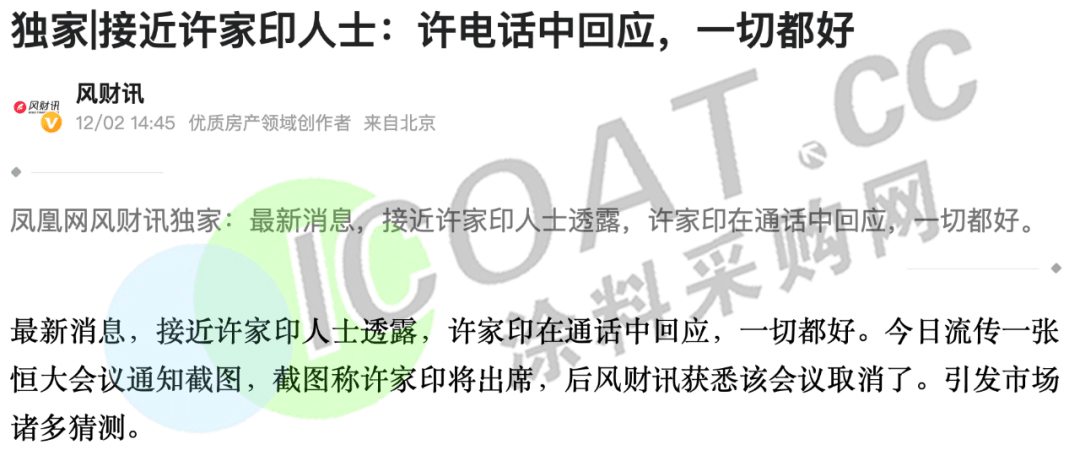 在多個媒體“證實”該傳聞之后,各路辟謠粉墨登場。當日下午1點多,一份許家印在恒大集團高管群的50秒語音截圖傳出。許家印在高管群中表示:“各地區公司董事長要讓品牌銷售部門加大工程建設的轟轟烈烈的場景的宣傳工作,宣傳和推廣,要加大交樓場景的宣傳推廣工作,交樓和工程建設是我們銷售的關鍵”。