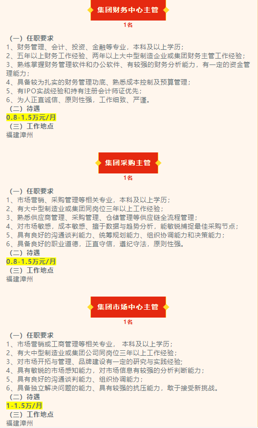 福建省閩粵化工建材集團(tuán):年薪50萬