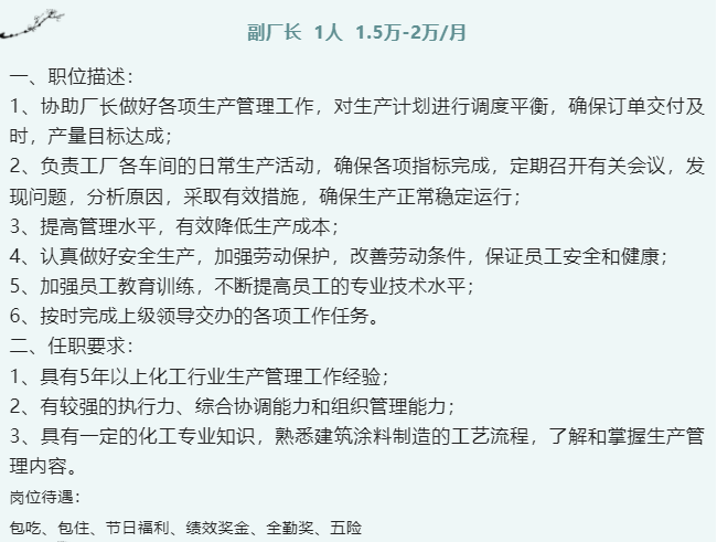 其次,在經(jīng)歷了3年疫情的封控之后,涂料企業(yè)正在奪回屬于自己的市場,年初以來,不少企業(yè)老板親自上陣去穩(wěn)定老客戶,去擴(kuò)展新市場,甚至大手筆投資在江浙滬等華南區(qū)域和珠三角、長三角區(qū)域建設(shè)項(xiàng)目,這就需要有經(jīng)驗(yàn)且有能力的“熟手”加盟管理,因此在項(xiàng)目所在地的大量擴(kuò)招也是必不可少的。