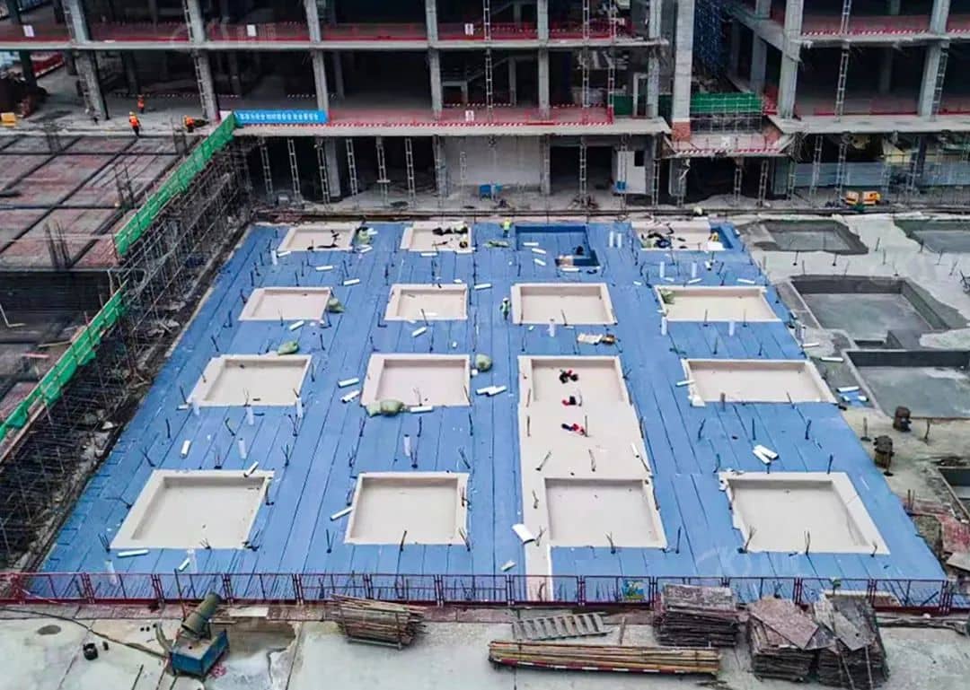 該工程建成后將成為中國(廣西)自由貿(mào)易試驗區(qū)地標性項目,2022年底科順承建的東塔防水項目完工,春節(jié)后陸續(xù)進場,火速開展地下室底板施工。