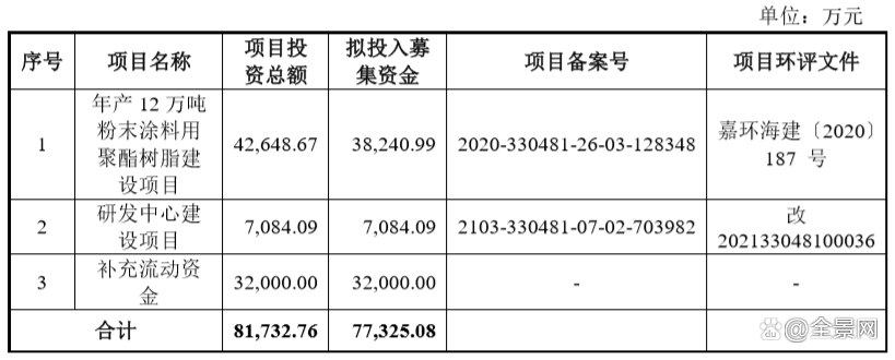 去年10月28日,浙江光華股份開啟了招股環(huán)節(jié),擬在深市發(fā)行新股并上市。此次IPO擬募集7.7億元,主要用于擴(kuò)大產(chǎn)能,其中3.82億元用于年產(chǎn)12萬噸粉末涂料用聚酯樹脂建設(shè)項(xiàng)目,7084.09萬元用于研發(fā)中心建設(shè)項(xiàng)目,3.2億元用于補(bǔ)充流動(dòng)資金。