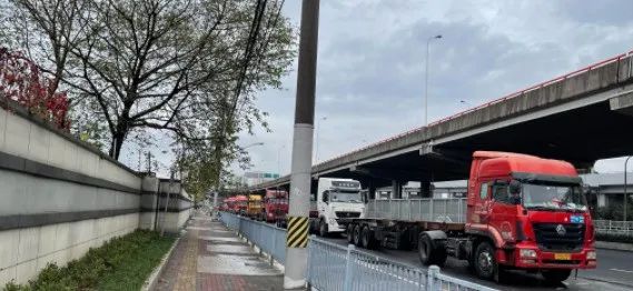 上港集團張華浜碼頭門口集卡空車排起長隊,工作人員表示,如今港口有很多空集裝箱,他們的工作量也因此受到影響。以前加班時,通常是“上12休12(小時)”,現在是“上12休24(小時)”。司機也表示,停在這兒的集卡,都是在排隊等接單。