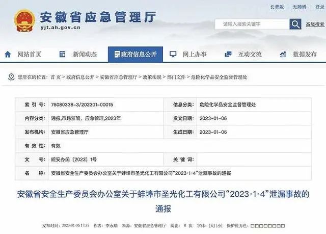 1月4日,安徽省蚌埠市圣光化工有限公司發生混酸(硫酸和硝酸混合物)泄漏事故,導致事發地上空出現大面積褐色煙霧。經初步調查,企業此前違規將硫酸儲罐用于儲存混酸,物料在存放過程中逐漸與罐體反應并生熱膨脹,導致反應物及混酸從儲罐上部進料口溢出。事故未造成人員傷亡,但造成較大社會影響。