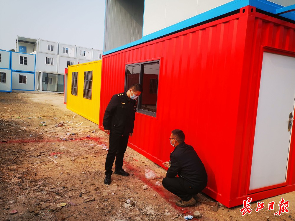 環保執法人員前往江夏區五里界街一家板房生產企業,這家企業在露天區域對活動板房進行噴漆作業。