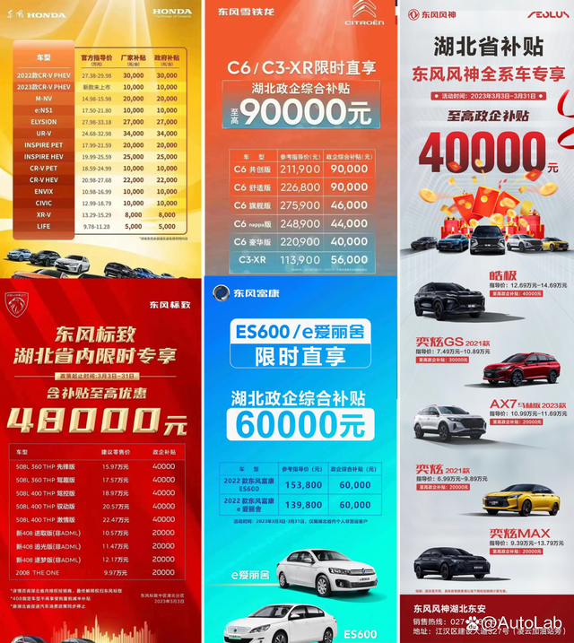3月以來,湖北省聯合多家車企推出政企購車補貼,其中涉及的“東風系”品牌降幅最大、范圍最廣,涵蓋東風風神、東風雪鐵龍、東風標致、東風本田、東風日產、東風富康和嵐圖7個品牌、56款車型,補貼力度從5000元至9萬元不等,原價11.39萬元的C3-XR致尚版優惠下來只要5.79萬元。