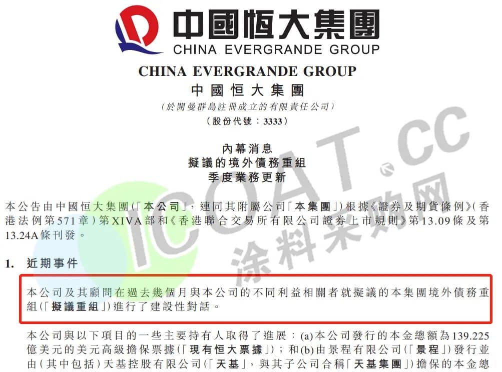 近日,中國恒大深夜發(fā)布一份超過價值千億的重磅協(xié)議,將發(fā)行新的債券對原債券進(jìn)行置換。新債券年限4至12年、年息2%至7.5%;前三年不付息,第四年初開始付息、付本金的0.5%。這意味著在時隔15個月后,恒大境外重組方案終于浮出水面,恒大重組也邁入了關(guān)鍵一步。