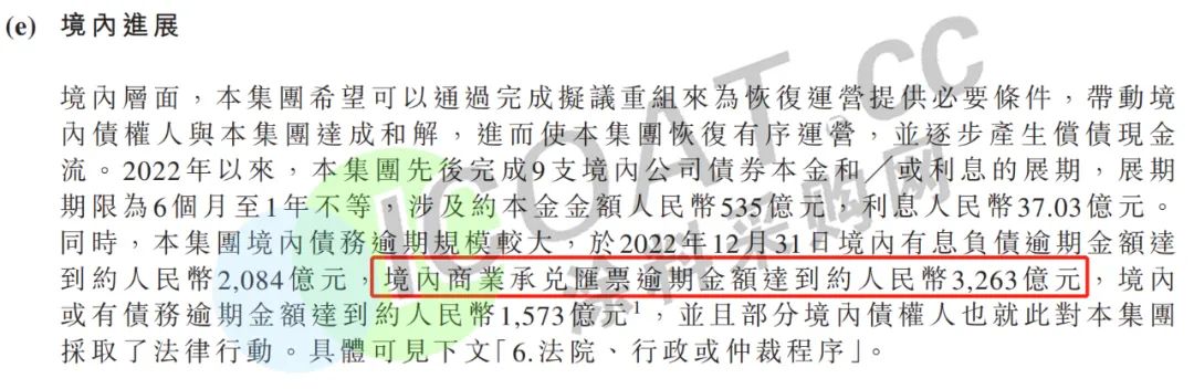 但鑒于境內(nèi)債務(wù)量巨大、境外債務(wù)復(fù)雜,加之汽車、物業(yè)板塊增量有限,恒大重生之路依然困難重重。截至2021年末,恒大集團(tuán)總資產(chǎn)僅1.70萬億元,但總負(fù)債卻有1.90萬億元,比總資產(chǎn)還高出近2000億元,已經(jīng)是資不抵債。截至2022年末,恒大集團(tuán)境內(nèi)有息負(fù)債逾期2084億元,境內(nèi)商票逾期3263億元,境內(nèi)或有債務(wù)逾期1573億元,三項(xiàng)合計(jì)6920億元。