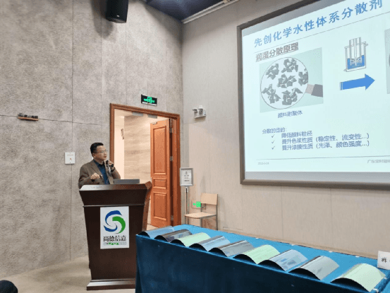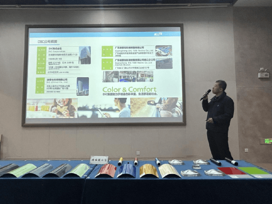 緊接著,廣東迪愛生彤德樹脂、法國先創化學品相關領導就水性工業漆涂料配方設計中樹脂、助劑及其他原材料產品的選擇和應用問題進行詳細的闡述。