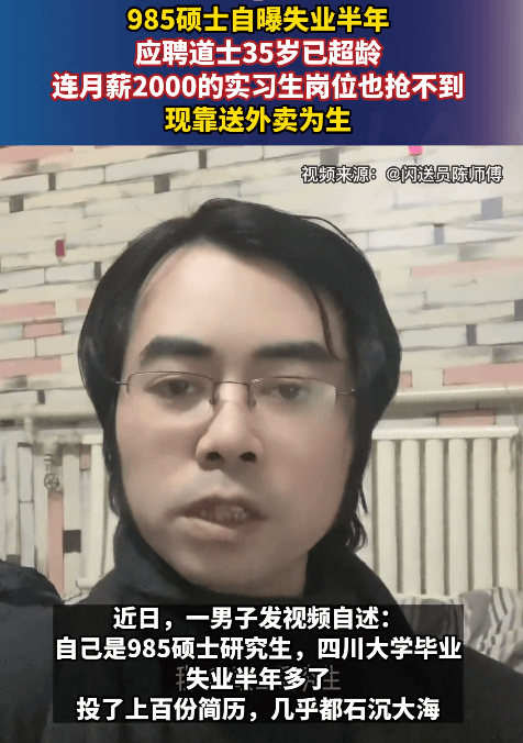 某碩士表示,自己失業(yè)半年,投了上百份簡(jiǎn)歷都石沉大海,應(yīng)聘道士被告知已超齡,連2000元的實(shí)習(xí)生崗位也搶不到。