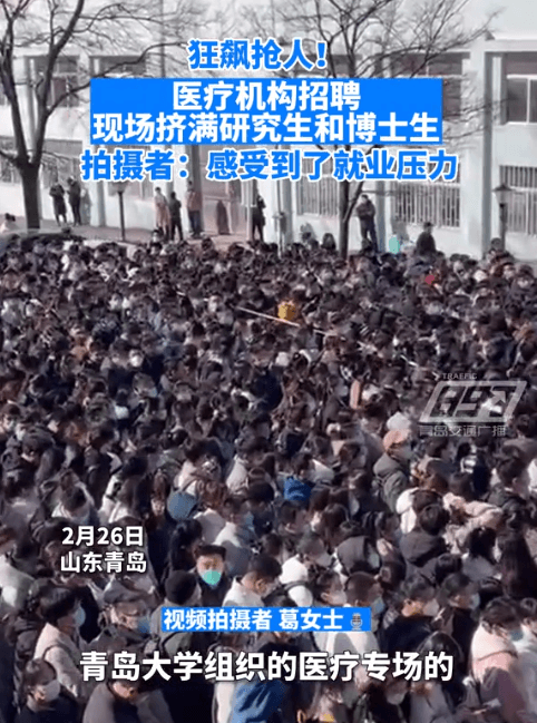 某醫(yī)療機(jī)構(gòu)招聘,現(xiàn)場(chǎng)擠滿(mǎn)了高學(xué)歷的碩博求職人員,人流熙攘讓人看著都喘不過(guò)氣。