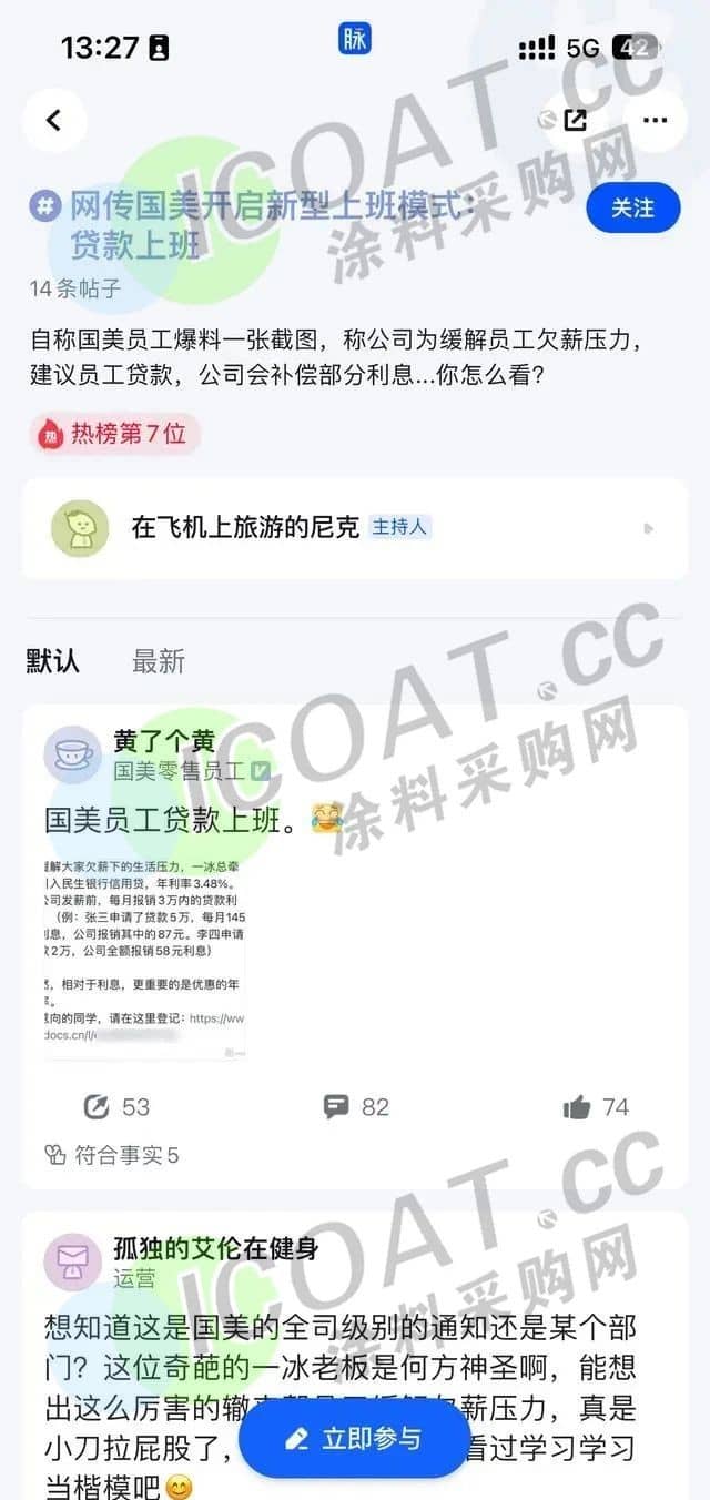 更有大招頻頻祭出!網(wǎng)傳國(guó)美開(kāi)啟新型上班模式:為緩解員工欠薪壓力,建議員工貸款,公司會(huì)補(bǔ)償部分利息。