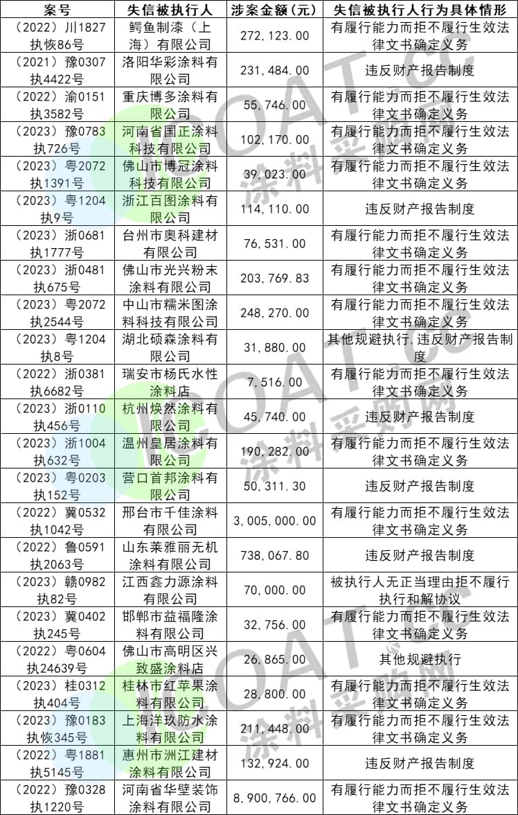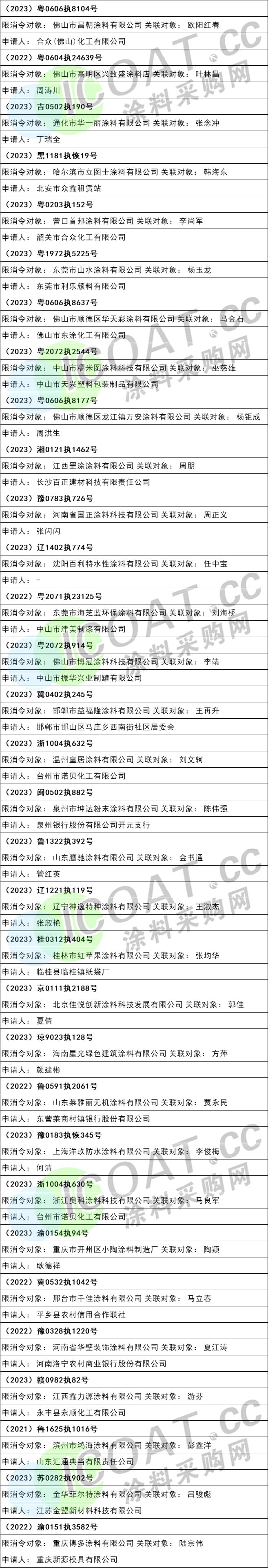 值得注意的是,2023年年初至今,就有700多家涂料企業被列為失信被執行人,或被限制高消費,其中涂料企業作為限消令對象的數量著實讓人震驚。