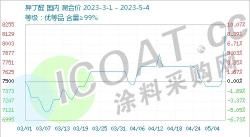 魯西化工的事故對于異丁醛及下游產業鏈也造成了一定的供給焦慮。5月4日國內異丁醛市場價格大幅上漲,日漲666.67元/噸,漲幅8.91%。部分廠家停車檢修,異丁醛供應趨緊,現貨流通緊張,大廠上調報價。