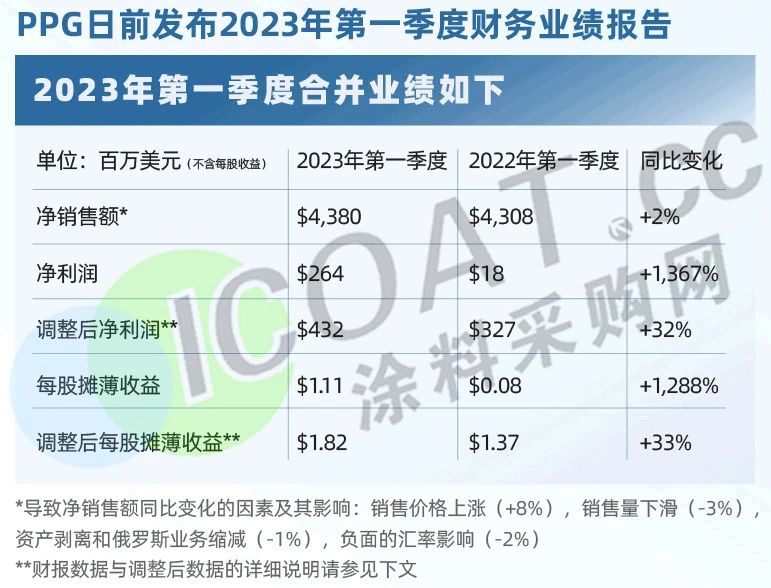 PPG:凈銷售額同增2%至43.8億美元,凈利潤暴增1367%至2.64億美元