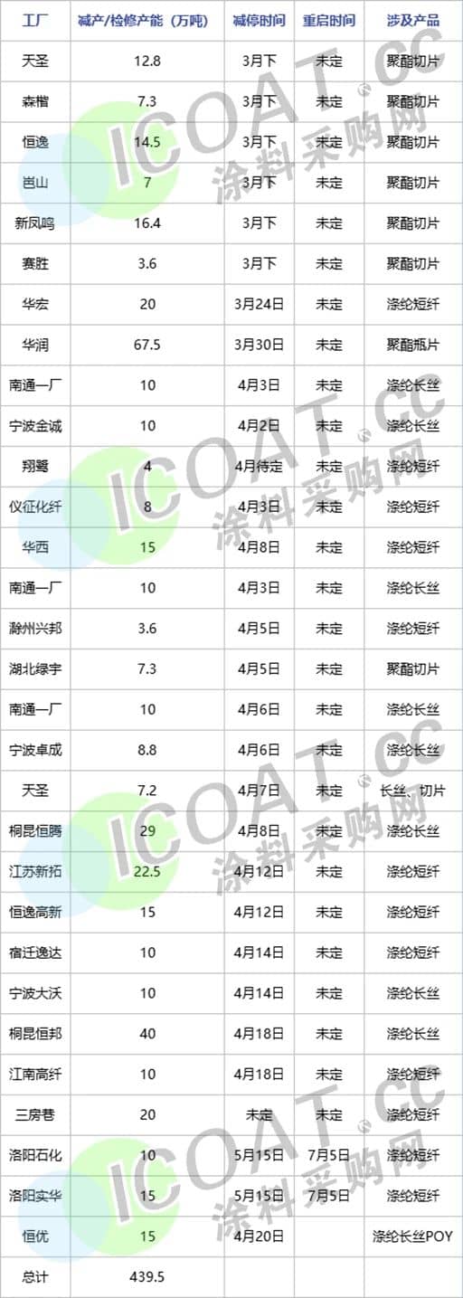 與此同時,化工行業的停產已經大面積蔓延。萬華化學發布停產檢修公告,按照年度檢修計劃,公司煙臺工業園乙烯(100萬噸/年)、PP(30萬噸/年)、PO/SM(30/65萬噸/年)等裝置將于5月8日開始陸續停產檢修,預計檢修45天左右。