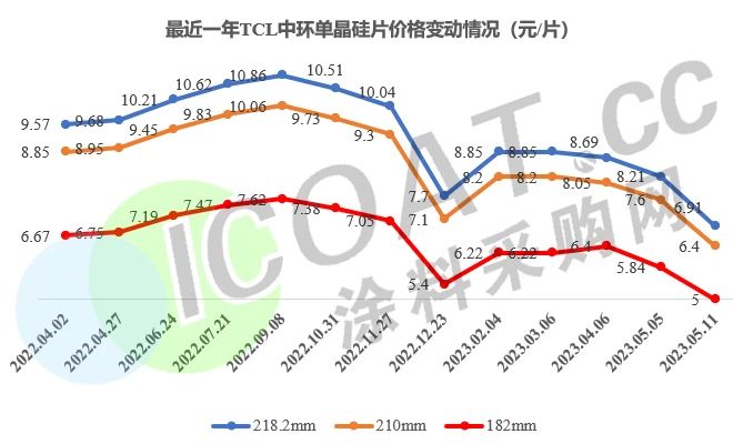中環再次下調硅片價格,且降幅更高,不同尺寸的降幅在17~19%之間。中環的單晶硅片此次調價之后,價格已經低于2022年底時的階段性最低報價。