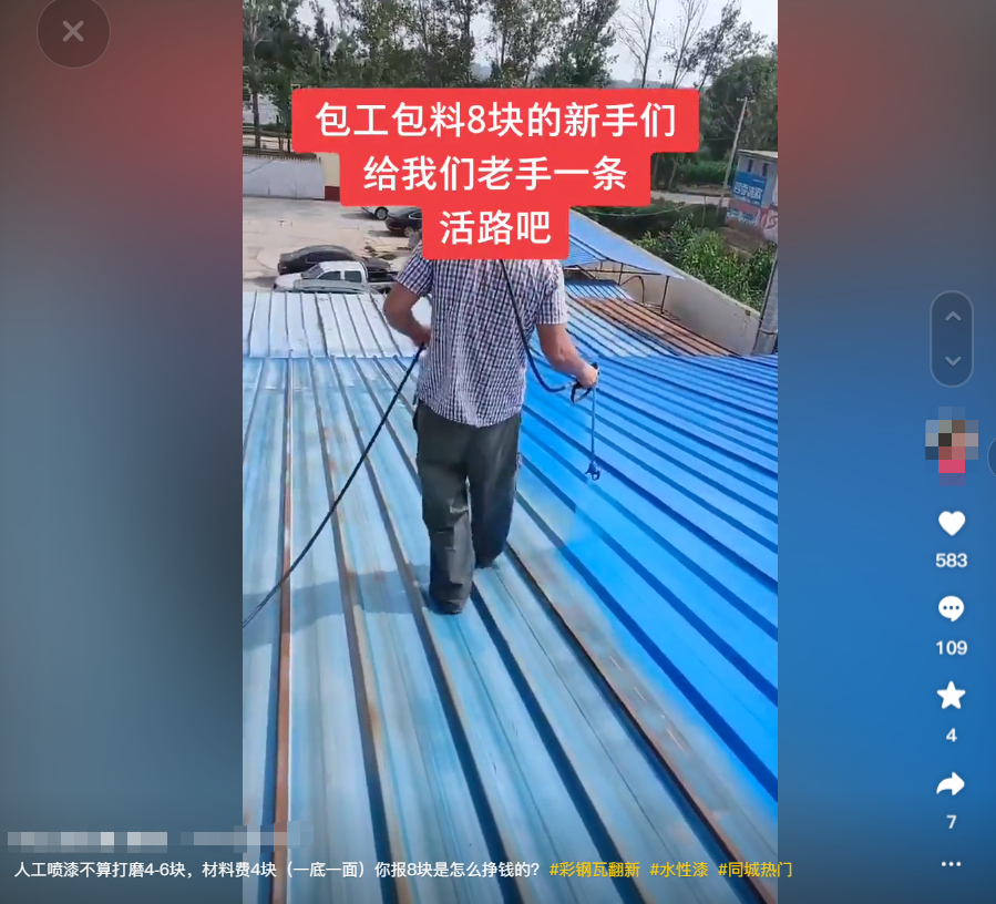 此前部分水漆工業漆企業表示,行業內價格戰頻發,尤其是以小型企業為代表的水漆廠,為了搶奪市場,紛紛推出超低價產品。一元一公斤的工程漆,號稱遮蓋力超強;一平方米成本4元的水性工業漆,號稱5-8年質保無憂。包工包料8元/平米的彩鋼瓦漆,還能分成打磨1.3元、噴漆7毛、材料4塊等幾個板塊,最后剩下2塊錢(每平方米)的利潤。8毛錢左右的真石漆,5元/公斤的鋼結構水漆,還能免費寄色卡,免費設計效果圖……