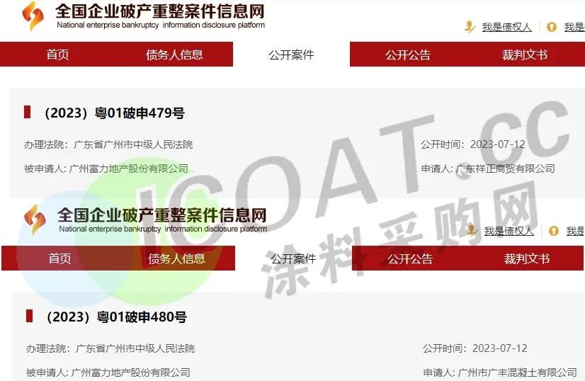 近日,“千億粵系房企”富力地產新增兩則破產審查案件,申請人分別為廣東祥正商貿有限公司、廣州市廣豐混凝土有限公司,經辦法院均為廣東省廣州市中級人民法院。