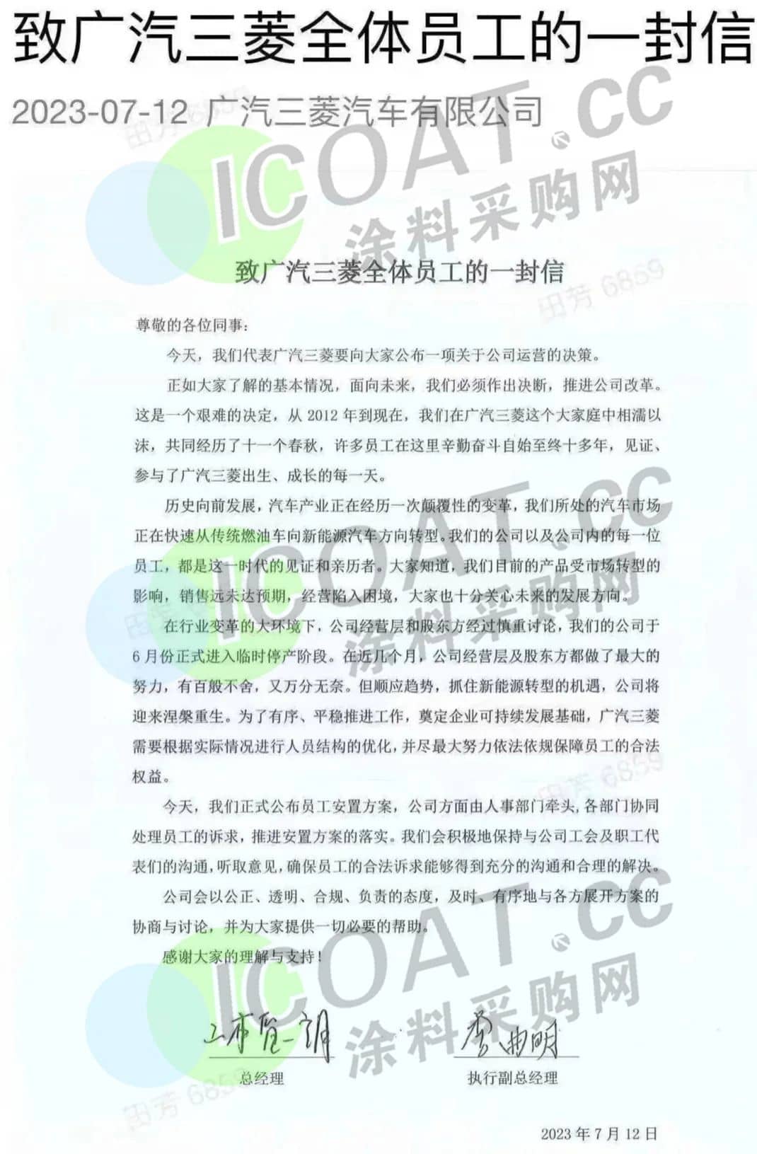 房地產行業危機重重的同時,汽車行業也沒能逃脫厄運。日前,一則《致廣汽三菱全體員工的一封信》引發外界關注。信中稱廣汽三菱目前的產品受市場轉型影響,銷售未達預期,經營陷入困境。公司于6月份正式進入臨時停產階段。此外,廣汽三菱需要根據實際情況進行人員結構的優化。