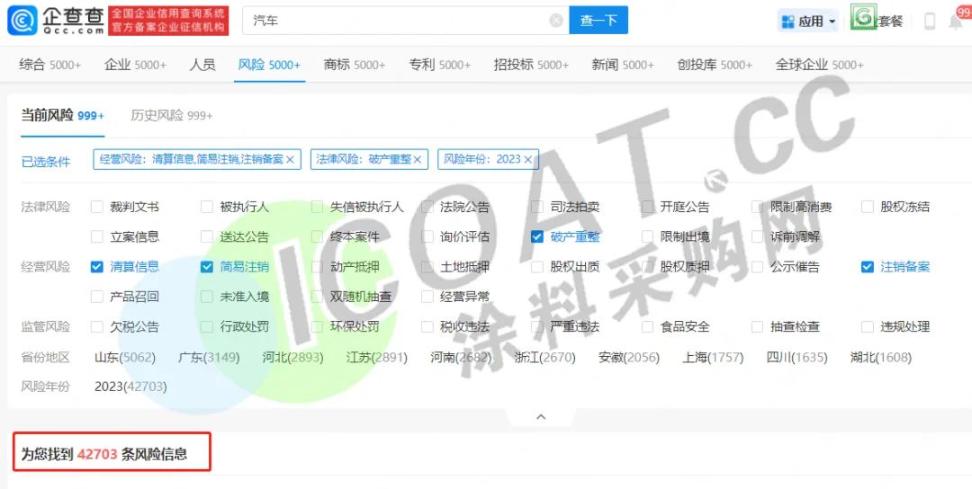 汽車行業:破產、清算、注銷42703家,包括汽車租賃、汽車銷售、汽車服務、汽車零部件、汽車貿易、汽車維修、汽車配件、汽車設備、汽車制造等多個細分領域。