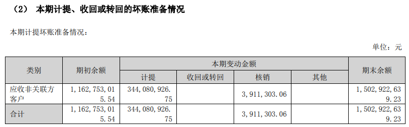 應收賬款壞賬準備期末余額為419,157,620.93元。