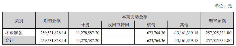 應收賬款壞賬準備期末余額為257,025,331.80元。