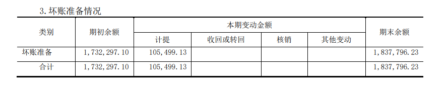 應收賬款壞賬準備期末余額為1,837,796.23元。