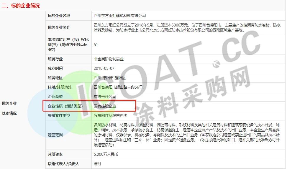 四川東方雨虹主要生產“改性瀝青防水卷材、防水涂料及砂漿”,為東方雨虹的西南區域生產基地。由東方雨虹與國企成都統建城市建設聯合出資成立了該合資公司,東方雨虹持股49%,成都統建城市建設持股51%。