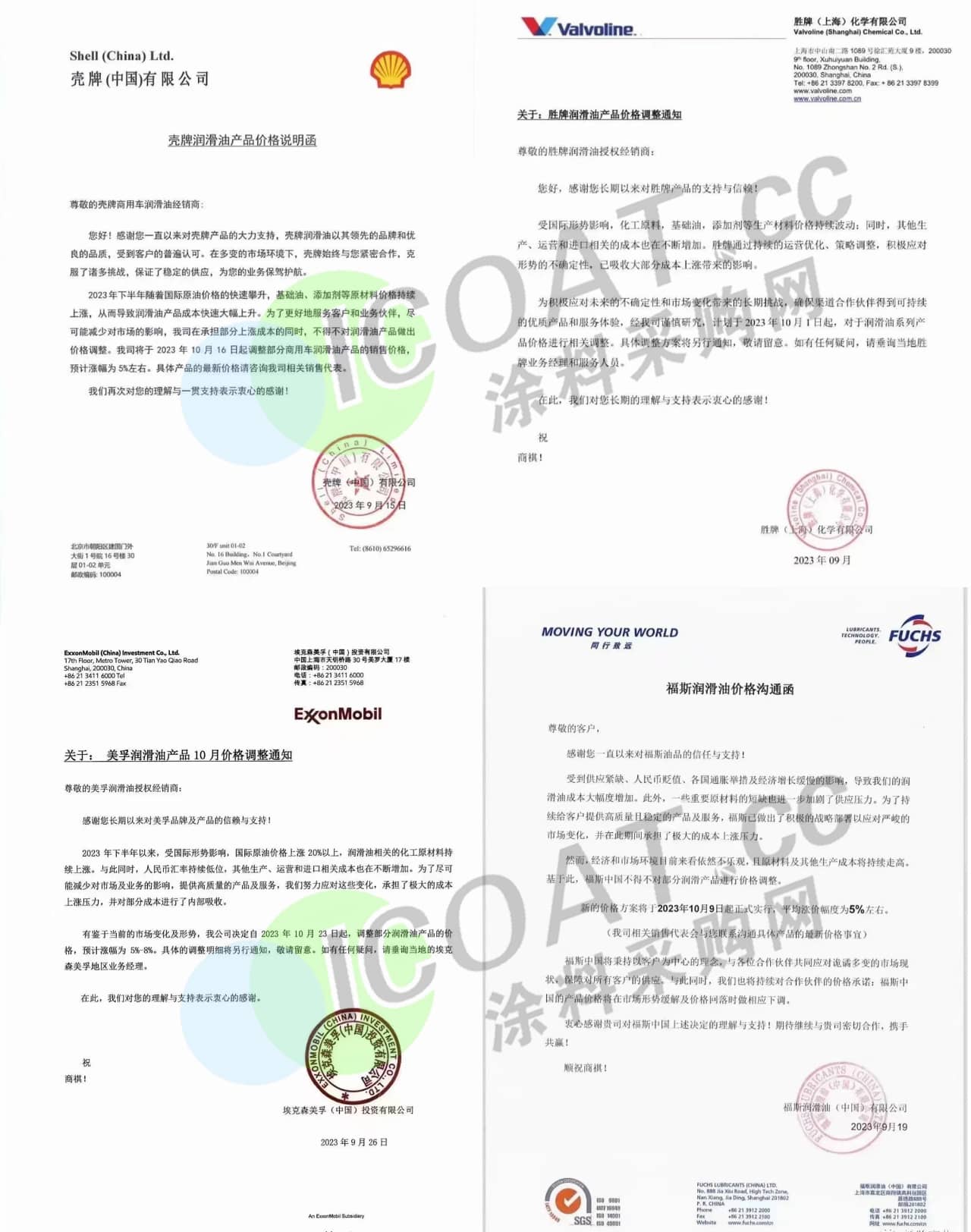司能潤滑油:自10月起,部分產品價格上調5%-10%不等。