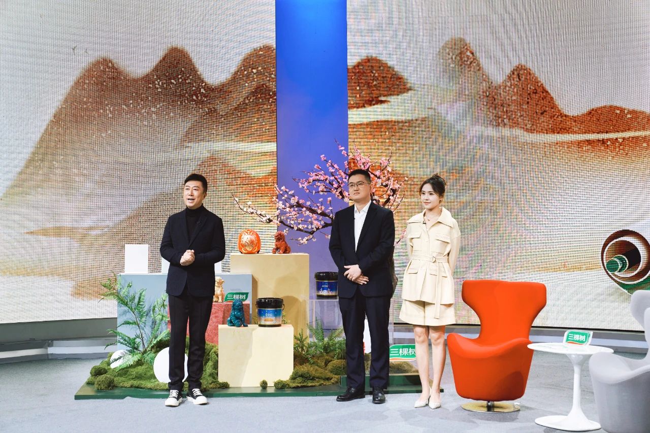 11月26日晚,三棵樹再次聯手央視財經開啟“國色傾城耀東方,三棵樹漆映美居”直播活動。總臺央視主持人陳偉鴻,總臺記者王冰冰,原中國美術學院副院長、中國色彩學科領軍人物宋建明教授,旅行博主房琪kiki,短道速滑男子500米世界紀錄保持者武大靖以及三棵樹集團副總裁洪圣源,三棵樹集團裝修漆產品負責人梁建鶴一起,在央視演播室共同探析以傳統五色為代表的“國漆國色”流傳千年的背后奧秘,并在“三棵樹健康家”概念空間向消費者展示了三棵樹國石系列藝術漆的獨特魅力。