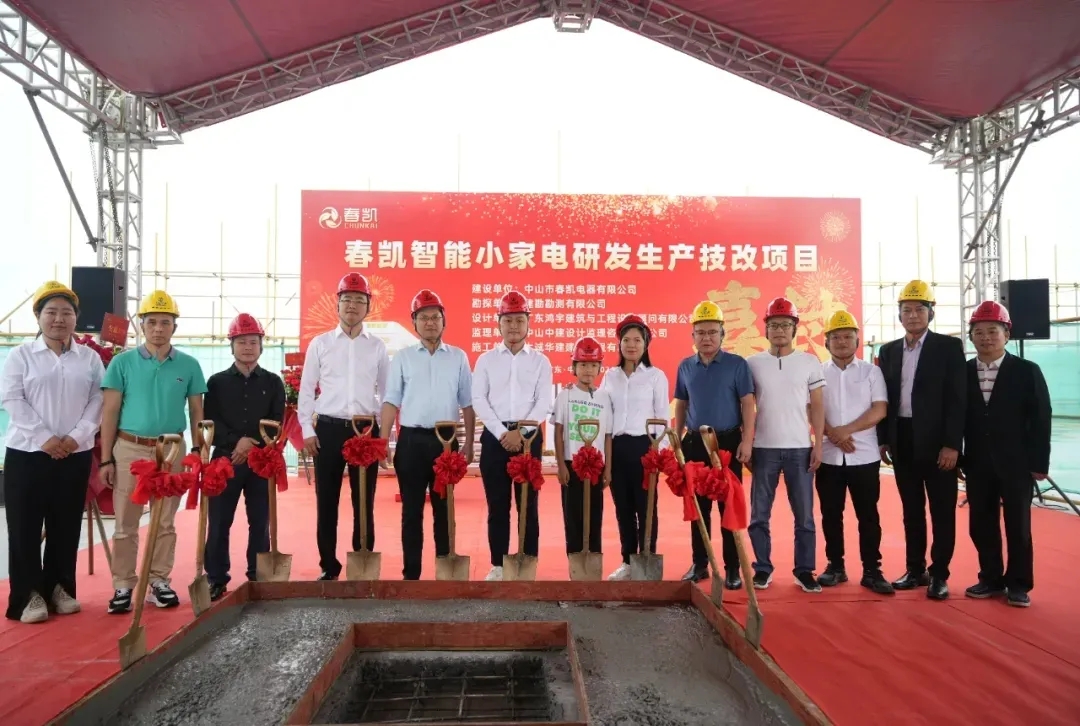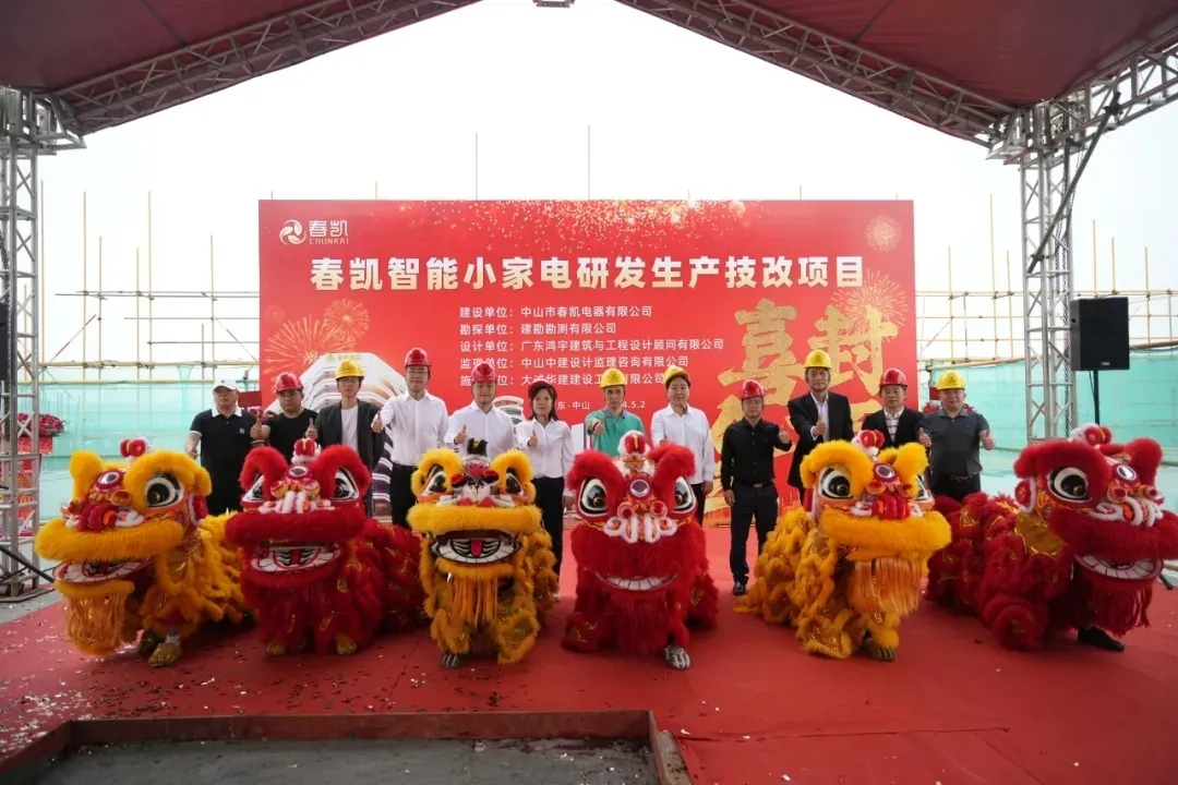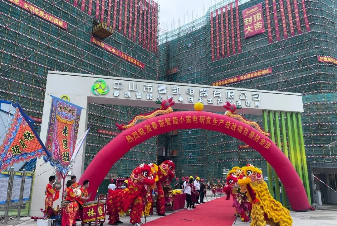 近日,春凱智能小家電研發生產技改項目舉行喜封金頂典禮。黃圃鎮領導梁泳輝、李振、黃炳潮以及項目方春凱電器董事長、麥泳,中山市茂南商會,相關負責人,各界嘉賓約100多人出席儀式典禮,共同見證令人激動的時刻。