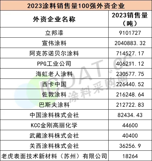 在涂料銷量100強企業中,僅有十幾家外資涂料企業,但這些企業的銷量卻占了100強總銷量的57%,可見外資企業的品牌競爭力不容小覷。