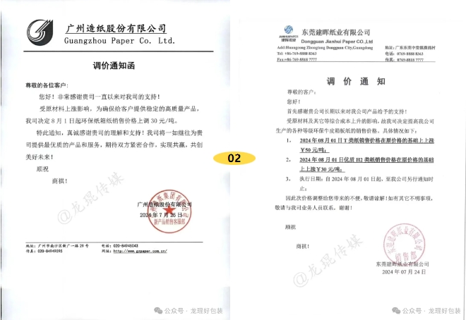 廣州造紙股份有限公司環保紙箱紙銷售價格上調30元/噸。