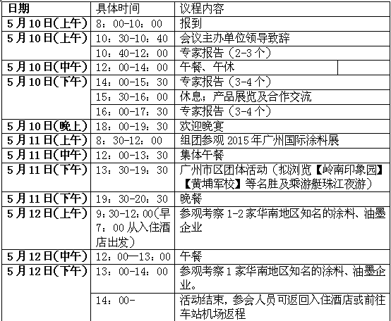 【中國涂料采購網】涂料、油墨和膠粘劑是當前中國發展非常迅猛且前景光明的三大高分子材料產業。隨著政府和民眾對環境保護的不斷加強和重視,開發和推廣環境友好型的涂料、油墨和膠粘劑已是一種必然趨勢。本研討會應“2015廣州國際涂料油墨膠粘劑展覽會”邀請,專門配套展會而召開,旨在匯聚國內外涂料、油墨和膠粘劑領域的技術專家、企業經營者及行業協會、媒體等精英人士,共同探討涂料、油墨和膠粘劑企業向環保型企業轉型的途徑和對策,重點探討水性材料技術的創新與應用,從而推進中國涂料、油墨和膠粘劑產業的綠色健康發展。